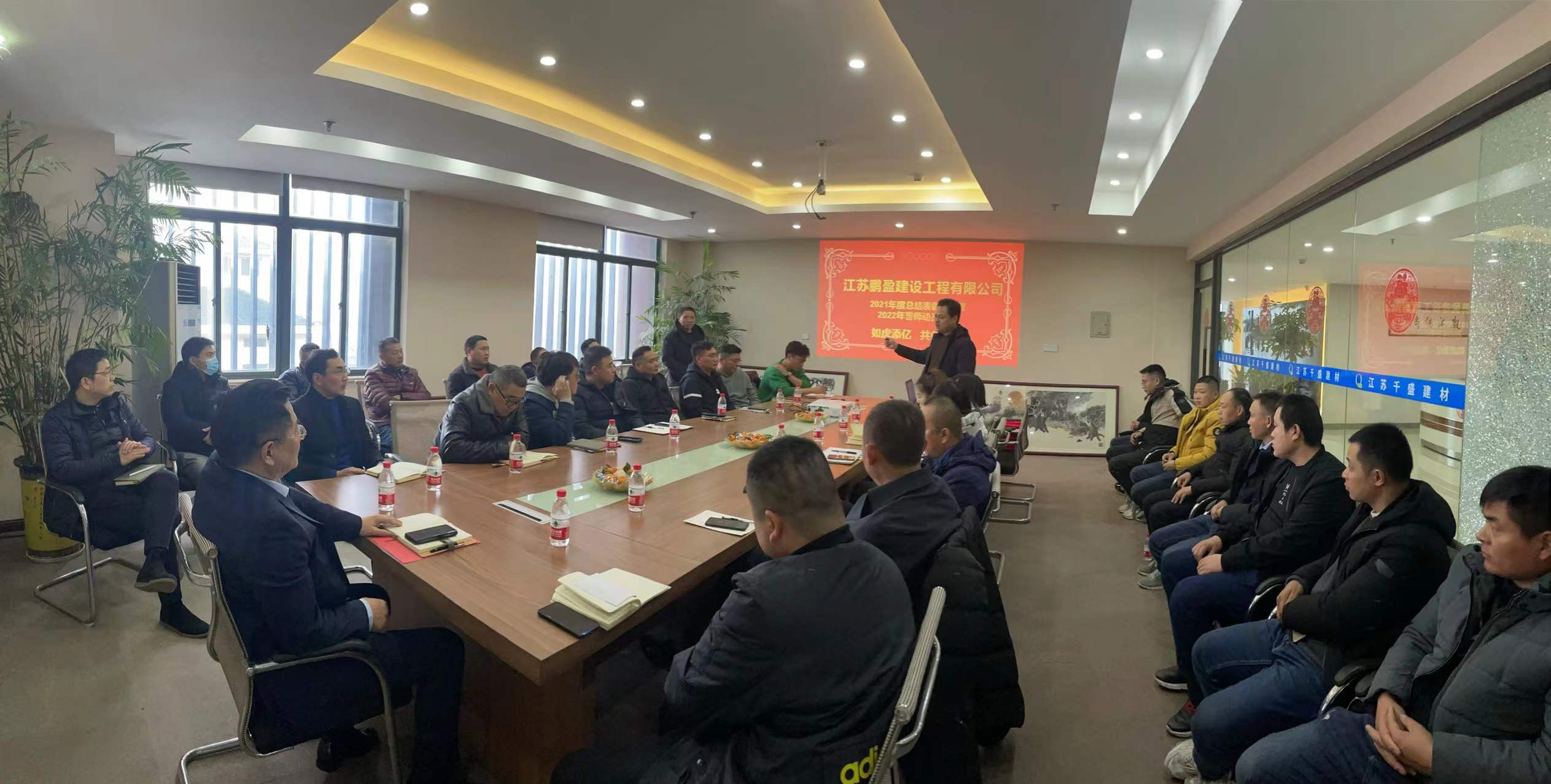 2022年1月22日,江苏鹏盈建设工程有限公司2021年度总结表彰大会暨2022年度工作誓师动员大会在江苏鹏盈建设工程有限公司隆重召开,公司领导、全体管理人员与各项目优秀员工代表一同参会。会上各项目负责人总结成绩,交流经验,总经理李伟同志致辞并表彰先进,重点表彰2021年为公司作出巨大贡献的优秀员工,带着荣誉和荣耀,获奖者在感恩中接过公司沉甸甸的认可,一年的不辞劳苦和辛勤工作都是值得的,未来,他们一定会更加努力,勇攀高峰。